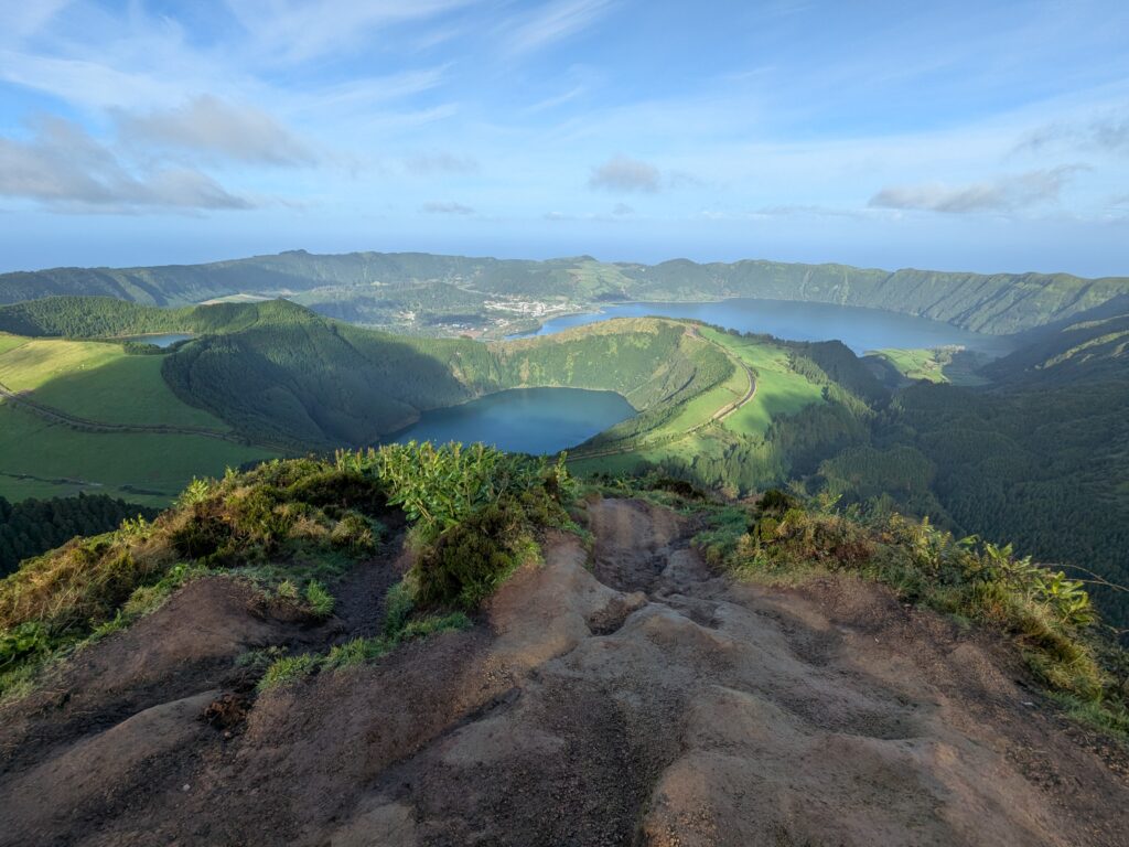 Sete Cidades lakes – One green, one blue, these large lakes fill twin volcanic craters in a stunning setting. We took numerous hikes around the lakes, and the Vista do Roi has a storybook vista that provides a stunning view. The city located near the lake has a lovely coffee shop with excellent pastries; necessary fuel for hiking.